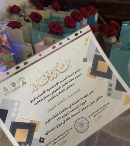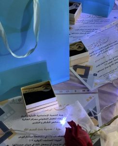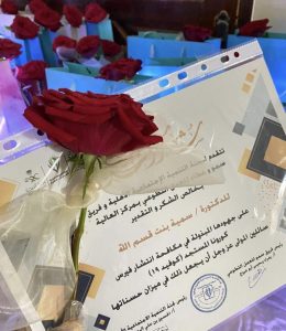 قام فريق سمو وعطاء التابع لجمعية رواد العمل التطوعي بجازان “وبقيادة الاستاذة: زهراء أبو عروج” وبالتعاون مع لجنه التنميه الاهليه بالعاليه بمبادرة نوعية تمثلت في تكريم الطاقم الطبي بمستوصف العالية بمجموعة من الهدايا العينية والبروشورات وشهادات الشكر والتقدير وذلك لقاء جهودهم التي يبذلونها في مواجهة جائحة كورونا. تضمن اللقاء أيضا على عرض مرئي اشتمل على بعض عبارات الشكر التحفيزية.
